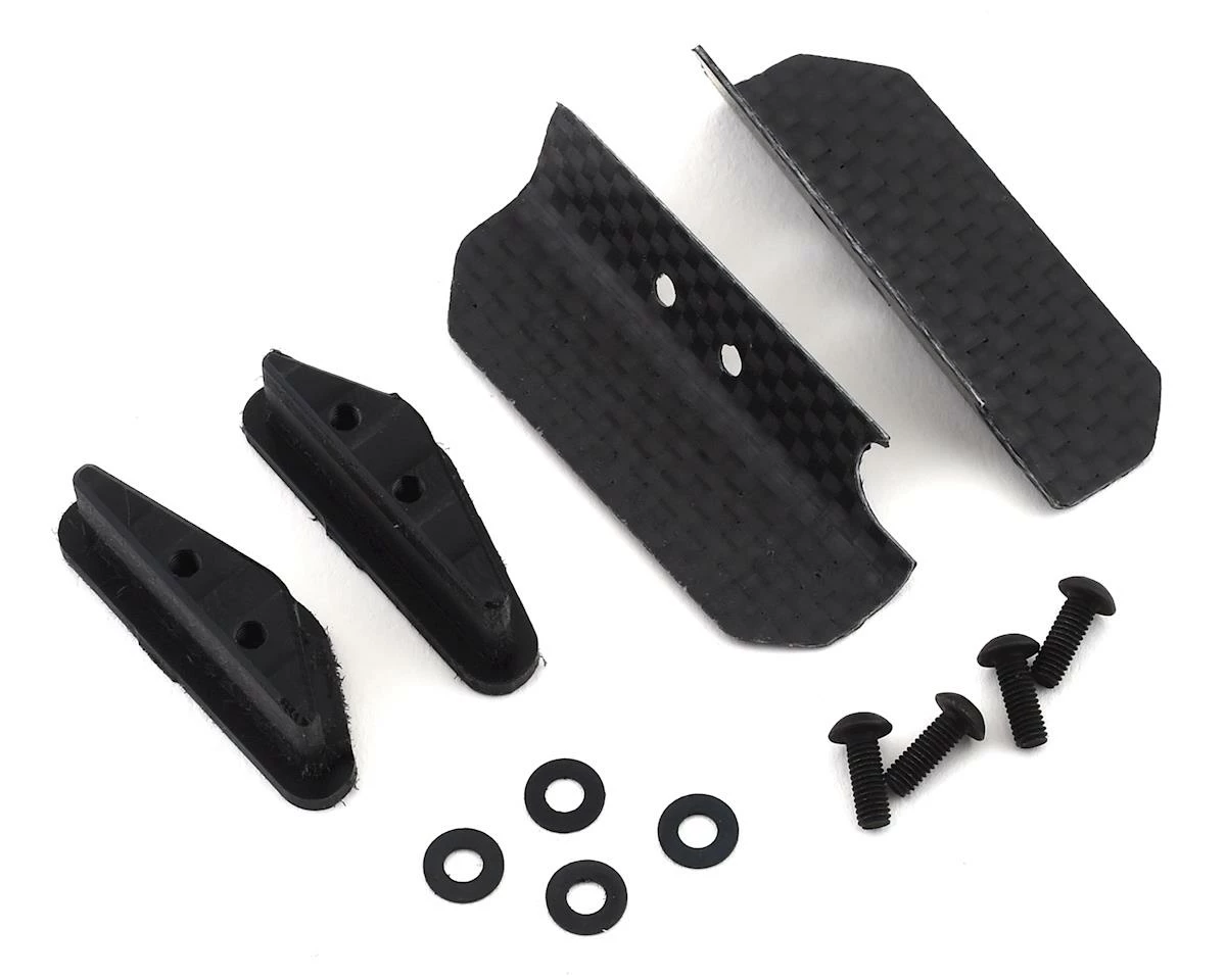 These molded carbon fiber wings are feather light, and include lightweight machined delrin mounting brackets that create a strong and lightweight mount for installation (7g total wing, mount and hardware).