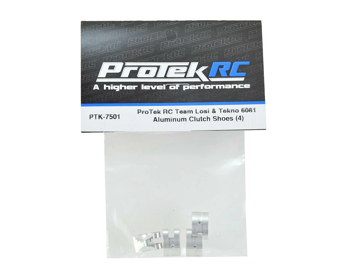 This is a set of four ProTek R/C Team Losi 6061 Aluminum Clutch Shoes. ProTek R/C clutch shoes are designed to work with the stock flywheel to provide increased performance over the standard clutch shoe material. These shoes are precision machined from 6061 billet grade aluminum to provide a clutch shoe that is stable at high temperatures, offers consistent wear and increased clutch performance. ProTek R/C clutch shoes are an excellent option for high horsepower engines and harsh driving conditions, when the stock factory clutch shoes are not up to the task.